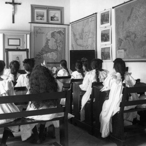 - Ook werd het onderwijs in de kolonie ontwikkeld naar Nederlands voorbeeld, maar met een grote aanpassing. Het werd gegeven in het Nederlands en in de inheemse talen. Het grootste succes werd geboekt met het terugdringen van het analfabetismeEen deel van de bevolking is niet of onvoldoende vaardig in lezen, spellen en schrijven.. Door de oprichting van lokale scholen, vaak met maar één onderwijzer, werd het analfabetisme teruggebracht tot 70%.