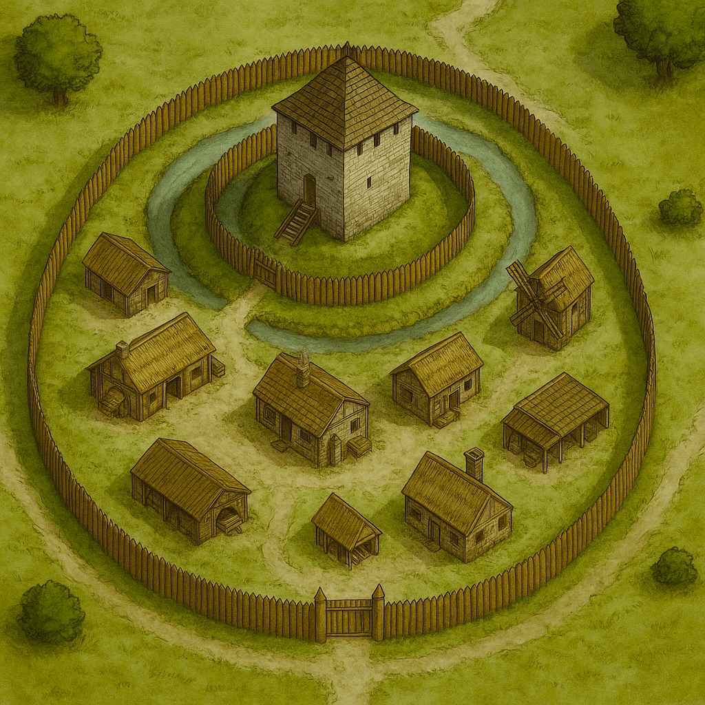 In het midden van een domein stond vaak een donjon. Dit was een stevige houten of stenen toren, meestal omringd door een muur van hout en scherpe palen. Zo’n donjon met het omliggende land van de heer werd een vroonhof genoemd. De mensen die in het gebied woonden, meestal boeren, waren afhankelijk van de edelman. Hij had namelijk als enige een veilige plek waar mensen naartoe konden vluchten als er gevaar dreigde.