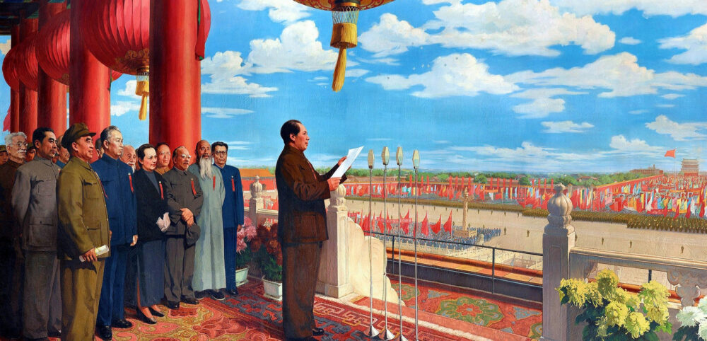 Diezelfde ideeën zouden later in eenzelfde vorm overgenomen worden door de Chinese Communistische Partij (CCP). Deze werd in 1921 opgericht door Chen Duxiu, een van de leidende figuren uit de 4 Meibeweging. Mao Zedong, geboren als boerenzoon, werd binnen de CCP steeds belangrijker. Na het bestuderen van Karl Marx’ theorie en de recente geschiedenis van de Russische Revolutie, was Mao ervan overtuigd dat een revolutie ook gedragen kon worden door boeren. De theorie van Marx ging uit van arbeiders – en die waren er nauwelijks in China – die via een eenmalige revolutie de macht zouden grijpen. Door het gebrek aan arbeiders zou een revolutie in China uitblijven. Maar deze Chinese boeren moesten eerst wel overtuigd worden van de noodzaak van een permanente revolutie, vanuit de idealen van het communismeIdeologie gebaseerd op de politieke en economische ideeën van Karl Marx. Het communisme streeft naar een klasseloze samenleving.. Om dit te bereiken werden grote massacampagnesGrootschalige acties die als doel hebben de bevolking te mobiliseren voor politieke, economische of sociale doelen. opgezet. Vanwege deze verschillen ten opzichte van het theoretische marxisme wordt de ideologie van de CCP onder Mao ook wel maoïsmeEen stroming binnen het communisme die benadrukt dat boeren het communisme moeten invoeren en dat er continu revolutie nodig is om dit te bereiken. genoemd.