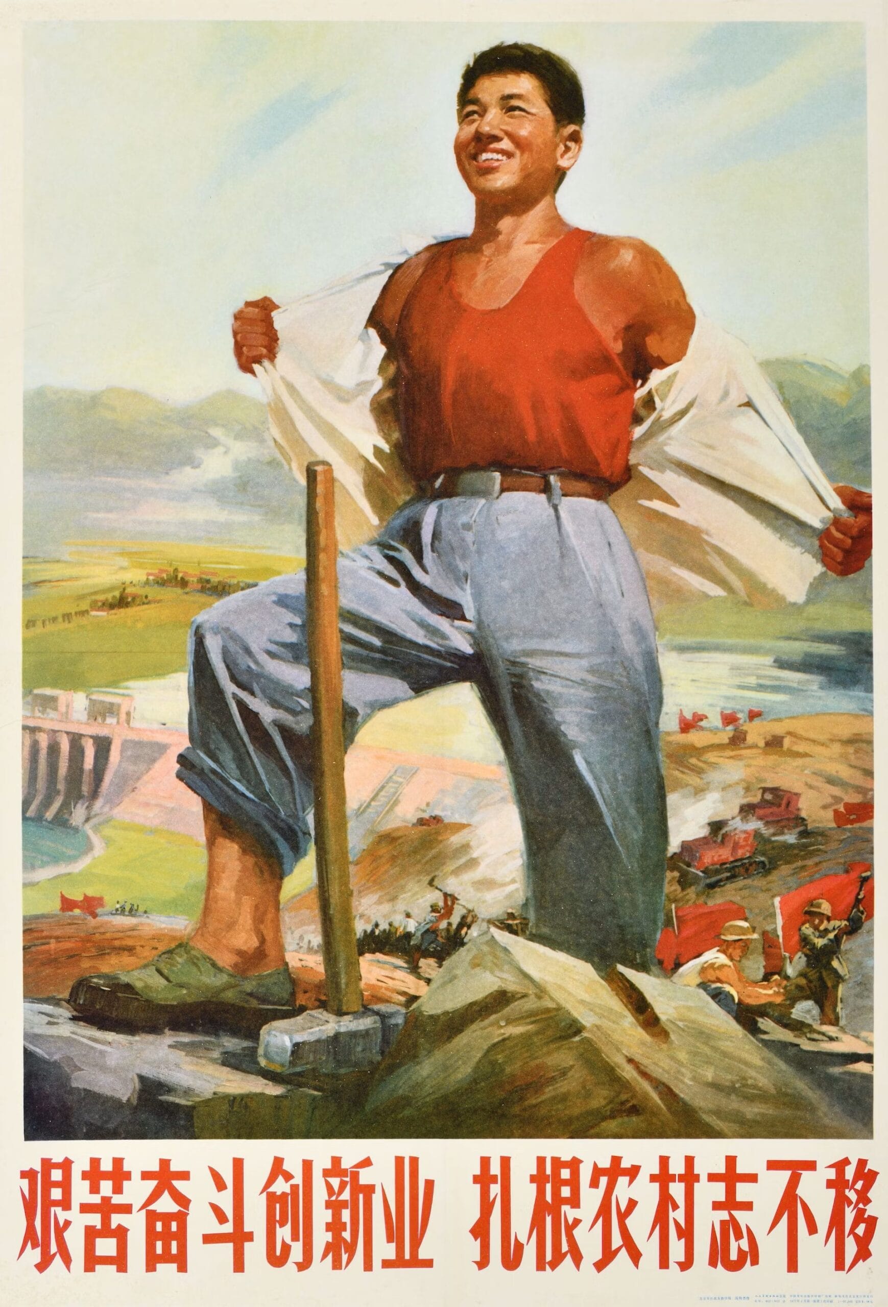 Bron 23. Deng Xiaoping begon aan het herstel van de Chinese economie na de dood van Mao. Daarvoor krijgen boeren veel vrijheid, maar de propaganda benadrukte nog steeds de noodzaak van hard werken.
