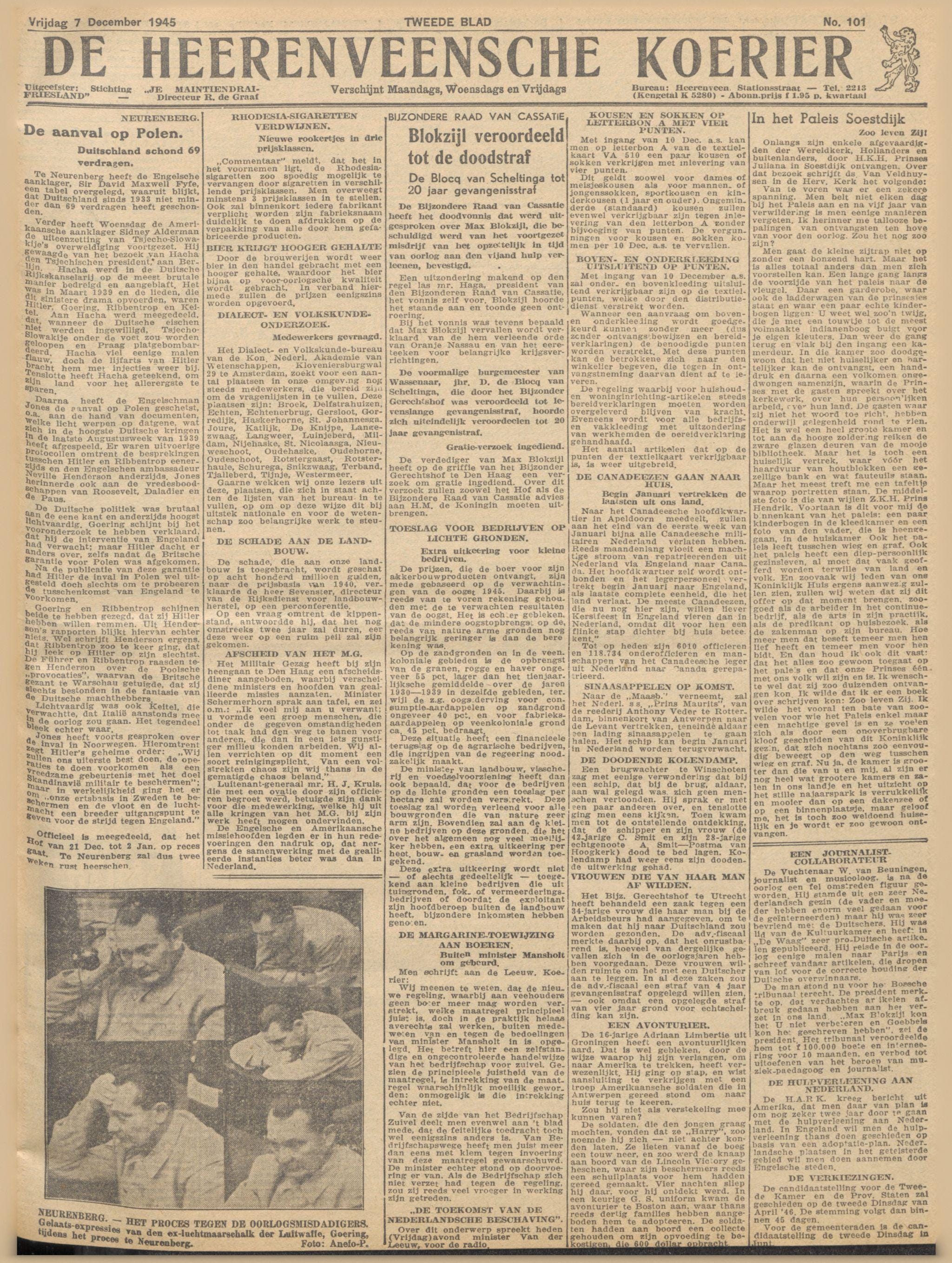 De Heerenveensche koerier onafhankelijk dagblad voor Midden Zuid Oost Friesland en Noord Overijssel 7 december 1945