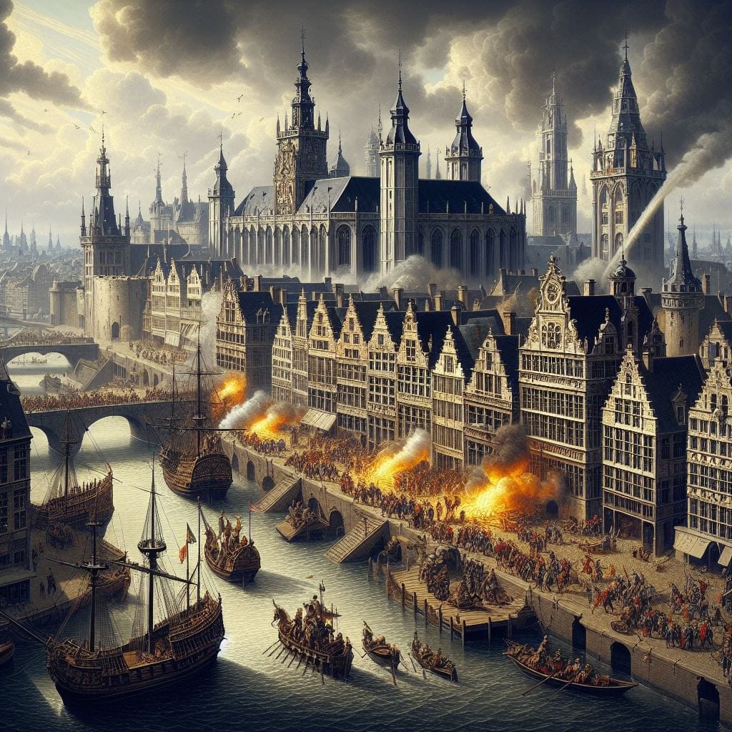 Als reactie op de onverdraagzaamheid en gewelddadigheden van de calvinisten, sloten de zuidelijke gewesten zich aan bij de Spaanse landvoogd en vormden ze de Unie van Atrecht in 1579. Ze waren niet langer in opstand. In hetzelfde jaar vormden de opstandige noordelijke gewesten de Unie van Utrecht. Ook calvinistische Vlaamse steden en Antwerpen sloten zich hierbij aan. Twee jaar later verwierpen de opstandige gewesten en steden Filips II als hun heerser. Dit leidde uiteindelijk tot een belegering van Antwerpen. Sommige handelaren weigerden naar Antwerpen te komen; ambachtslieden zagen hierdoor hun inkomsten slinken. Het lot van Antwerpen werd in 1585 bezegeld, na een tweede belegering.