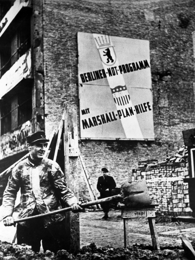 Een jaar later volgde het Marshallplan. De VS boden economische hulp aan Europese landen die zwaar geleden hadden onder de oorlog. Het doel was om de economie weer op gang te brengen én het communisme minder aantrekkelijk te maken. De Sovjet-Unie verbood haar bondgenoten om dit geld aan te nemen.