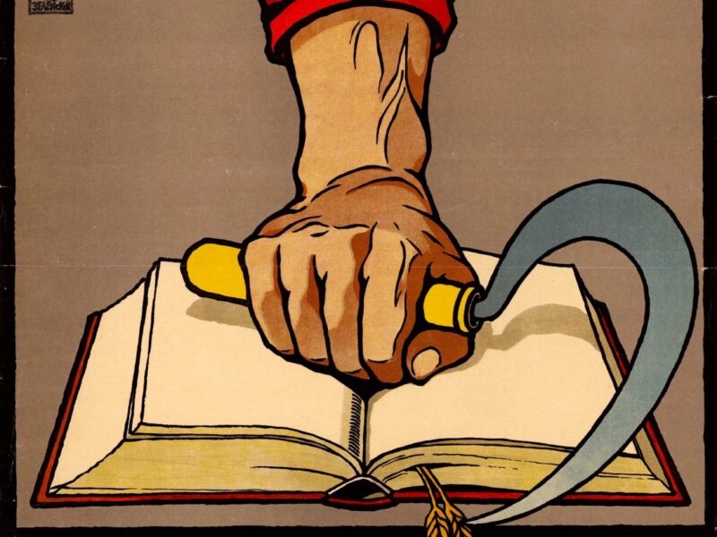 Bron 11. Propagadaposter met daarop de boodschap: "Om meer te hebben, moeten we meer produceren. Om meer te produceren, moeten we meer weten". Met behulp van dit soort posters stuurde Stalin zijn volk op de manier zoals hij wilde. Tegenstanders werden uit de weg geruimd.
