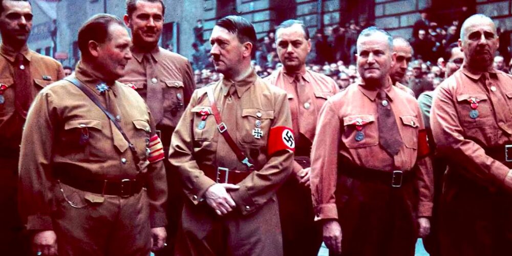 Het nationaalsocialisme, geleid door Hitler, deelde veel van deze kenmerken, maar voegde een racistische component toe die uniek was voor nazi-Duitsland. Volgens de nazi-ideologie was de samenleving verdeeld in verschillende rassen (rassenleerEen theorie die veronderstelt dat er superieure en minderwaardige rassen zijn.), waarbij het Arische ras als superieur werd beschouwd (Ubermenschen). De Joden werden gezien als de grootste bedreiging voor de Arische zuiverheid omdat zij minderwaardig waren (Untermenschen), wat leidde tot systematische antisemitische wetten en uiteindelijk de genocideHet vernietigen van een nationale, etnische of religieuze groep, of het doen van een poging daartoe. die bekend staat als de Holocaust. De nazi’s geloofden ook in Lebensraum, het idee dat Duitsland moest uitbreiden naar het oosten om ruimte te maken voor de groei van het Arische ras.